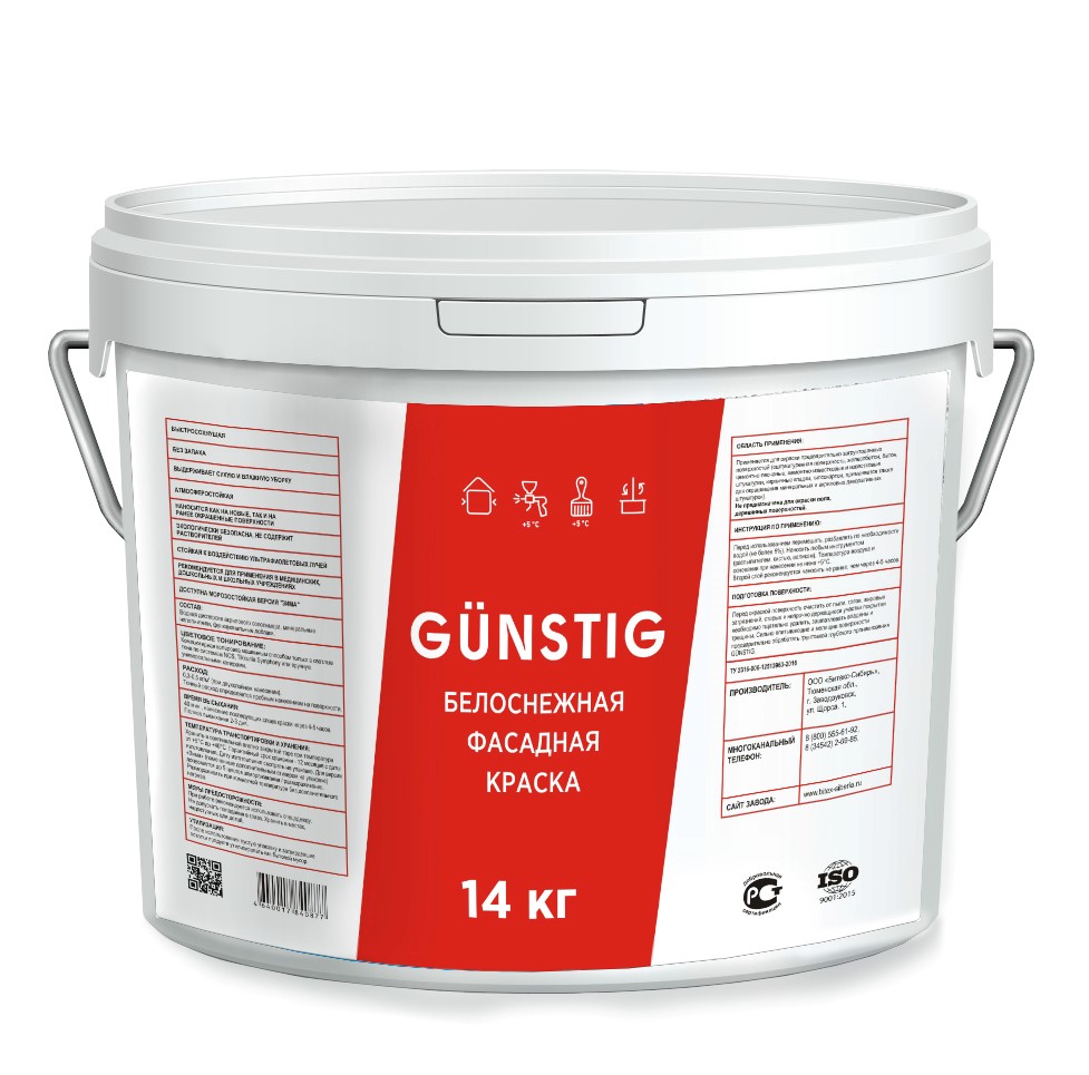 Белоснежная фасадная краска Gunstig