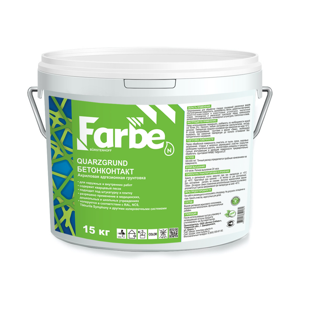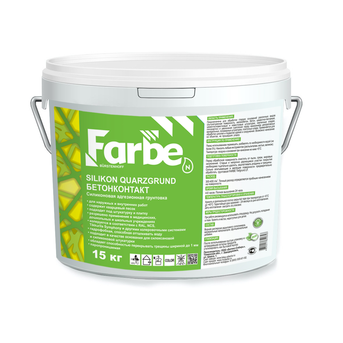 FARBE SILIKON QUARZGRUND - Силиконовая грунтовка для стен, полов и потолков. Содержит мелкий кварцевый песок, придающий загрунтованной поверхности шероховатость, благодаря чему грунтовка значительно повышает сцепление декоративных покрытий к основанию.